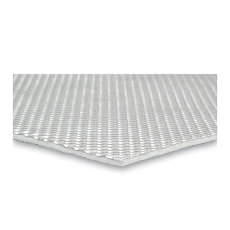 DEI Floor and Tunnel Shield II insulation is designed to provide the best heat protection in areas of problematic high temperatures. Designed to withstand up to 1,750 degrees of direct continuous heat, this peel and stick insulation limits heat transfer on firewalls, transmission tunnels, floor boards, fuel cells, and other areas where heat is an issue. DEI Floor and Tunnel Shield II insulation is constructed with an embossed 10mm aluminum face bonded to a 1/8 in. composite glass-fiber core and backed with a super-strong, pressure-sensitive backing. It can be shaped and trimmed for a custom fit and is ideal for minimal clearance areas. Floor and Tunnel Shield II can be used on aluminum, metal, carbon fiber, plastic, and more to reflect damaging heat.